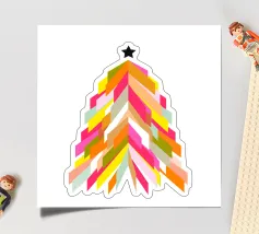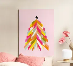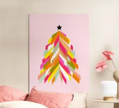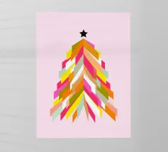 Aggiungete un tocco di fascino giocoso al vostro arredamento natalizio con questa colorata illustrazione astratta dell'albero di Natale. Realizzato con audaci forme grafiche ritagliate in un allegro arcobaleno di colori pastello (rosa, giallo, arancione, verde e sormontato da una sorprendente stella nera), questo disegno dà un tocco moderno alle tradizionali icone natalizie. Su uno sfondo rosa tenue, crea un'atmosfera femminile e festosa, fresca ed elegante. Perfetta per l'arte murale, i cuscini, le decorazioni per la casa e per i regali di Natale, questa illustrazione illuminerà sicuramente la vostra stagione natalizia con la sua estetica unica e gioiosa.