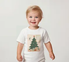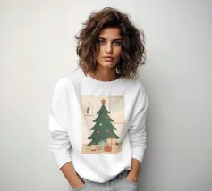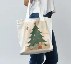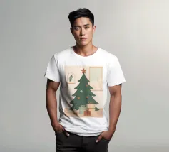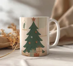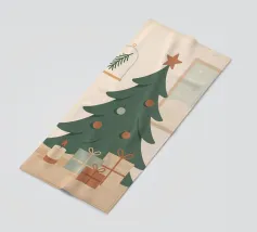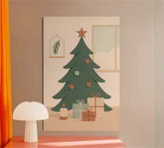 Una serena scena di albero di Natale illustrata in rilassanti toni nordici. Questo design minimalista porta una tranquilla sensazione di festa in qualsiasi spazio, mescolando colori tenui con il fascino moderno delle feste.