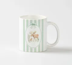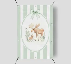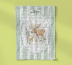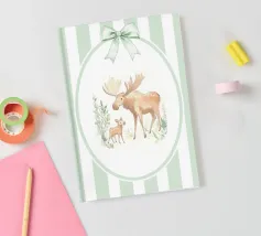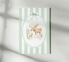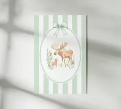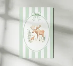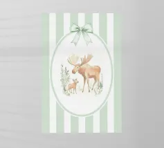 Scoprite la bellezza della fauna selvatica con questa incantevole illustrazione ad acquerello che raffigura un maestoso alce e il suo adorabile vitello in mezzo a una vegetazione lussureggiante. Perfetto per gli amanti della natura e dell'arte.