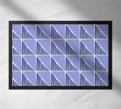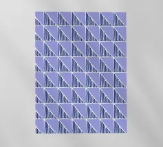 Questa immagine presenta un motivo geometrico composto da forme triangolari alternate, ciascuna riempita da linee orizzontali disegnate a mano.I triangoli sono disposti in un formato a griglia, creando un design ripetitivo e strutturato.La tavolozza dei colori offre uno sfondo morbido e viola con linee blu scuro all'interno dei triangoli.L'effetto disegnato a mano aggiunge una sensazione dinamica e strutturata al motivo altrimenti nitido e angolare.Questo design moderno è ideale per progetti grafici, tessuti o sfondi digitali e offre una sensazione dinamica e strutturata.
