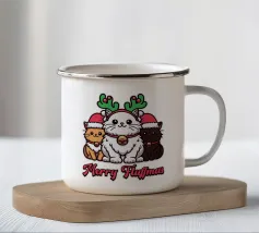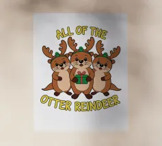 Tre lontre con corna da renna sono allegramente in piedi insieme, ognuna con un abbigliamento festivo e una con un regalo in mano. I fiocchi di neve li circondano, rendendo il tema natalizio ancora più interessante, e le parole "All of the Otter Reindeer" appaiono sopra e sotto.