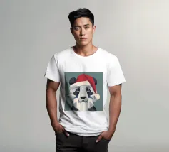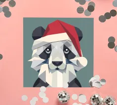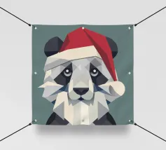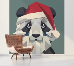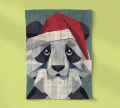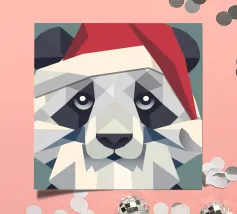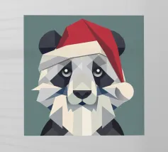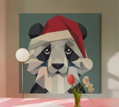 Questo panda festivo combina perfettamente arte moderna e allegria natalizia. Un'attrazione per la stagione invernale e un dettaglio unico per chiunque apprezzi la creatività e lo stile.Panda moderno con cappello natalizio in stile geometrico