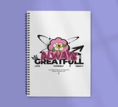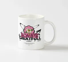 Un design pieno di positività ed energia creativa! Questo motivo di street art mostra un allegro personaggio floreale dei cartoni animati davanti agli iconici anelli di Saturno. La scritta "ALWAYS GREATFULL" combina una texture giocosa e soffice con un abile gioco di parole che esprime gioia e gratitudine. Una fusione armoniosa di arte urbana e fantasia che suscita un sorriso e ispira.