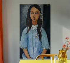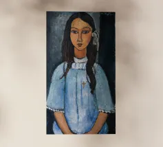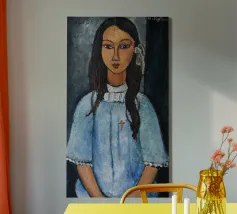 Alice (1916-1919) di Amedeo Modigliani è un ritratto aggraziato e stilizzato che esemplifica le forme allungate e il tono emotivo sereno tipici dell'artista. La testa inclinata della figura, gli occhi a mandorla e lo sfondo semplificato creano un senso di immobilità e introspezione. Dipinto durante il periodo di maturità di Modigliani, questo capolavoro modernista unisce un'eleganza senza tempo a un'espressione audace, rendendolo una scelta accattivante per gli amanti della ritrattistica del primo Novecento e della decorazione murale minimalista.