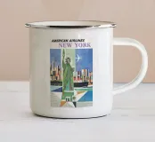 Immergetevi nel vibrante paesaggio urbano di New York con questo straordinario poster d'epoca dell'acclamato artista David Klein. Creato per American Airlines, l'opera d'arte mostra una Statua della Libertà splendidamente stilizzata e astratta in primo piano, con il vivace skyline di New York e un piroscafo sullo sfondo. Un jet dell'American Airlines si staglia nel cielo, a simboleggiare la facilità dei moderni viaggi aerei. Le texture ricche, le pennellate decise e l'estetica di metà secolo ne fanno un pezzo unico. Questo poster digitale ad alta risoluzione (7000x5000 pixel, 300 dpi) cattura perfettamente lo stile caratteristico di Klein.