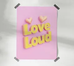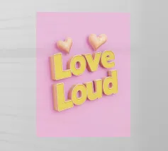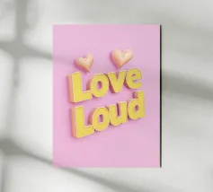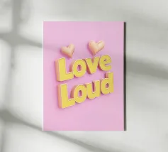 Questa moderna opera d'arte tipografica presenta le parole "Love Loud" in lettere gialle brillanti su uno sfondo rosa vibrante. Con il simbolo del cuore e l'effetto 3D, ricorda un'insegna pubblicitaria di ispirazione rétro: una dichiarazione d'amore, di passione e di energia positiva. Minimalista ma espressivo, è perfetto per gli spazi moderni o per le pareti di gallerie creative.