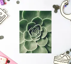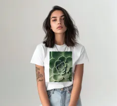 Questo motivo mostra l'affascinante simmetria e la bellezza di una pianta grassa in morbide tonalità di verde. Il design armonioso emana calma e chiarezza e sottolinea perfettamente l'eleganza naturale di questa specie vegetale. Un'immagine ideale per gli amanti delle piante che desiderano integrare nella propria casa l'aspetto minimalista e la bellezza senza tempo della natura. Che si tratti di murales, tazze, cover per cellulari o cuscini, questo motivo crea accenti di stile.
