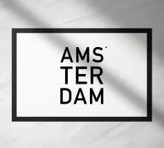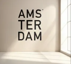 Adoro andare ad Amsterdam, nei Paesi Bassi. Adoro viaggiare in tutto il mondo. Adoro visitare le città, le montagne e il deserto. Tipografia in nero e bianco (trasparente). È possibile cambiare il colore dello sfondo. Poster tipografico minimalista di un viaggiatore.