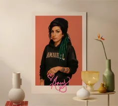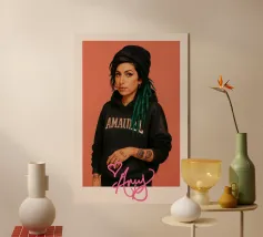 Amy Winehouse sotto una nuova luce: questo ritratto moderno mostra l'icona della musica in stile street, con felpa con cappuccio, cappellino e tatuaggi leggendari. Una combinazione riuscita di atteggiamento retrò e look urbano contemporaneo. Perfetto per i fan di Amy, della cultura pop e delle personalità forti. Ideale come stampa d'arte o poster per salotti, studi o come regalo per i veri amanti della musica.