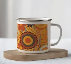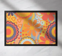 Colori vivaci e giocosi di ispirazione flower power anni '70. Design retrò con un'allegra atmosfera nostalgica per ogni occasione, perfetto per l'arredamento della casa in stile vintage o per accessori divertenti. Un audace e felice stile hippie con vibrazioni groovy.