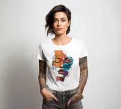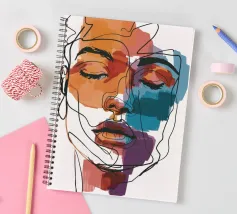 Un ritratto espressivo e moderno creato con un disegno a linee continue, sovrapposto a macchie astratte di colore. L'opera è un'esplorazione cruda, artistica ed emotiva del volto umano.