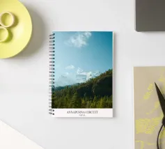 Una vista mozzafiato della catena dell'Annapurna, catturata lungo il leggendario percorso di trekking del Nepal. Questo poster di viaggio minimalista mette in evidenza il perfetto contrasto tra le lussureggianti foreste di pini e le cime innevate dell'Himalaya sotto un cielo azzurro. La tipografia centrata e l'elegante bordo bianco conferiscono all'immagine un aspetto raffinato e da galleria.
