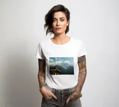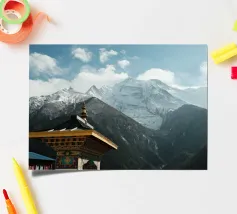 Un chorten sacro si erge ai margini dell'Himalaya, con i suoi motivi ornamentali che riecheggiano secoli di devozione e artigianato. Alle sue spalle, le imponenti cime della catena dell'Annapurna si ergono come antichi guardiani, avvolti dalla neve e dal silenzio. Questa scena senza tempo cattura la profonda armonia spirituale tra l'umanità e la natura negli altopiani del Nepal.