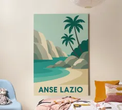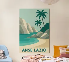 Uno dei gioielli delle Seychelles, ridisegnato con toni morbidi e linee moderne. Anse Lazio come non l'avete mai vista prima: grafica, chic e contemplativa. Un'immersione visiva in un paradiso minerale e vegetale.