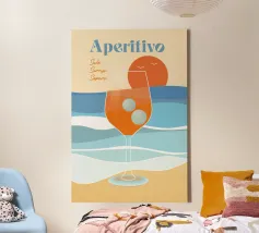 Scoprite l'essenza dell'estate con la nostra splendida illustrazione "Aperitivo - Sole, Sorrisi, Sapore". Questo disegno artistico cattura la magia di una perfetta serata estiva ed è un must per chiunque si goda la vita appieno. Le parole Sole, Sorrisi, Sapore in italiano significano sole, risate e sapore e catturano l'essenza della dolce vita e il piacere dell'aperitivo. Il fulcro del design è un elegante bicchiere da vino che simboleggia l'atmosfera rilassata di un tramonto sulla spiaggia. Il gradiente di colore della bevanda nel bicchiere
