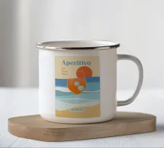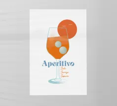 Scoprite l'essenza dell'estate con la nostra splendida illustrazione "Aperitivo - Sole, Sorrisi, Sapore". Questo disegno artistico cattura la magia di una perfetta serata estiva ed è un must per chiunque si goda la vita appieno. Le parole Sole, Sorrisi, Sapore in italiano significano sole, risate e sapore e catturano l'essenza della dolce vita e il piacere dell'aperitivo. Il fulcro del design è un elegante bicchiere da vino che simboleggia l'atmosfera rilassata di un tramonto sulla spiaggia. Il gradiente di colore della bevanda nel bicchiere