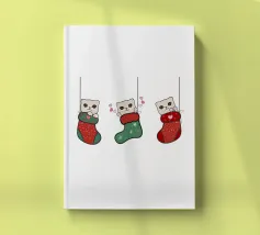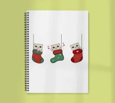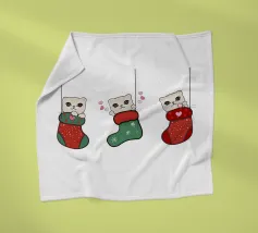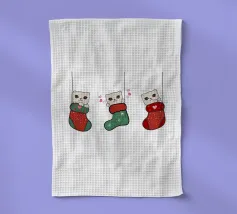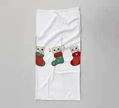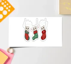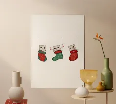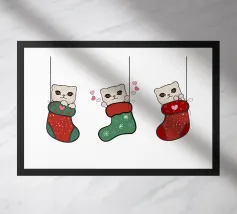 Appeso gattini carino con calze di Natale. Auguri di buon Natale