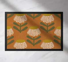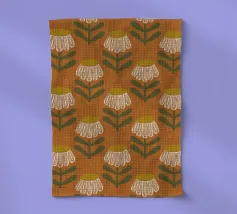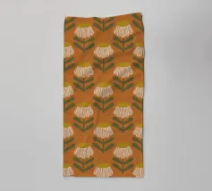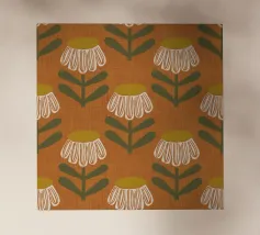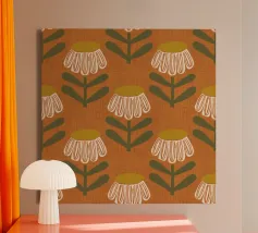 Audace e terrena, questa stampa a margherite presenta toni arancio bruciato e senape bilanciati dal verde oliva. Un tocco moderno su un pezzo nostalgico, che evoca interni accoglienti e retrò con un tocco di stile.