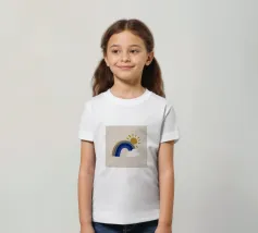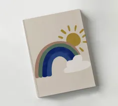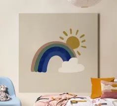 Questa illustrazione minimalista mostra un arcobaleno e nuvole bianche su uno sfondo beige, ideale per la camera di un bambino o di una bambina. Nei caldi colori della terra, il design boho solare irradia cordialità e pace. Perfetto per l'interior design scandinavo, porta un tocco di natura in casa.