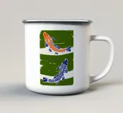 Due eleganti pesci koi scivolano tra i corsi d'acqua verdi: un motivo artistico pieno di calma e forza simbolica. I colori blu e arancione rappresentano equilibrio, energia e felicità, mentre lo stile grafico chiaro ricorda l'arte giapponese della xilografia. Questo design unisce tradizione e modernità e conferisce un'atmosfera armoniosa e meditativa a qualsiasi ambiente.