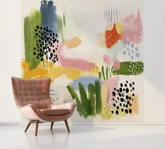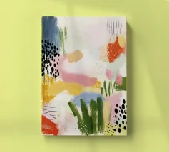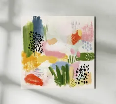 Una vibrante disposizione di forme sovrapposte in ricche tonalità retrò come il verde oliva, il giallo senape, il rosa arrossato, il rosso corallo e il nero profondo. Questo pezzo di ispirazione midcentury modern unisce il fascino dell'espressione astratta all'eleganza del minimalismo Art Déco. La finitura leggermente strutturata evoca le serigrafie d'epoca, rendendolo una dichiarazione di stile per gli interni contemporanei. Ideale per soggiorni, uffici o spazi creativi che cercano un punto focale audace ma equilibrato.