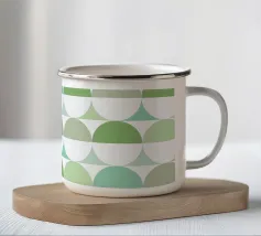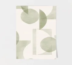 Il disegno presenta un'accattivante disposizione di cerchi, rettangoli e forme astratte di foglie sovrapposte, che alludono sottilmente a forme organiche all'interno della struttura. La texture granulosa aggiunge profondità e interesse visivo.