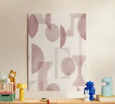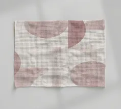 Il disegno presenta un'accattivante disposizione di cerchi, rettangoli e forme astratte di foglie sovrapposte, che alludono sottilmente a forme organiche all'interno della struttura. La texture granulosa aggiunge profondità e interesse visivo.