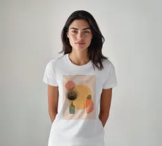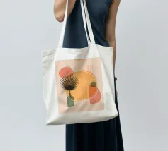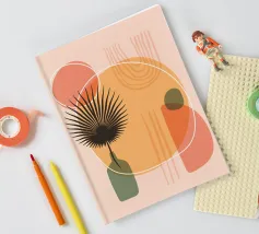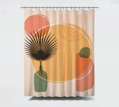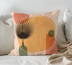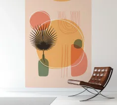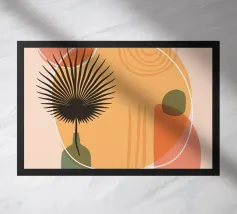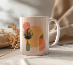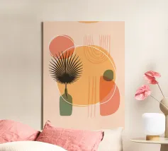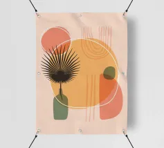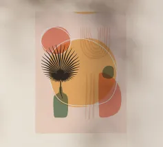 Questo design unico combina forme astratte, calde tonalità della terra e linee minimaliste per creare una composizione armoniosa in uno stile boho di tendenza. Con elementi come la silhouette di una foglia di palma e accenti geometrici, il motivo crea un'atmosfera stimolante, perfetta per gli spazi abitativi moderni. Ideale per murales, tazze o tessuti: una vera e propria dichiarazione di individualità e stile.