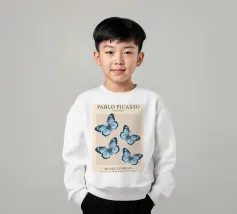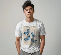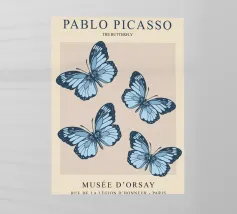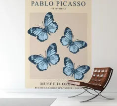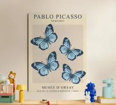 Questo bellissimo motivo, ispirato allo stile iconico di Pablo Picasso, mostra quattro farfalle dettagliate in morbide tonalità blu. Simboleggia libertà, leggerezza ed eleganza. Perfetto come accento artistico per gli spazi moderni o come regalo ispiratore. Che si tratti di murales, tazze, cuscini o cover per cellulari, questo disegno aggiunge un tocco unico ed elegante a qualsiasi prodotto e farà la gioia degli amanti dell'arte e della natura.