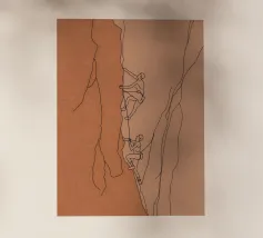 Audace line art minimalista di scalatori, che cattura l'avventura e la determinazione. Perfetta per gli amanti dell'outdoor e per le decorazioni ispirate alla motivazione.