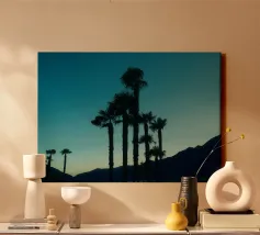 Catturata sul lungolago di Ascona, questa immagine mostra un tranquillo stato d'animo mediterraneo, mentre il sole scompare dietro le montagne. Le iconiche palme si stagliano alte contro un cielo sempre più profondo, fondendo la serenità svizzera con un fascino quasi tropicale. Un pezzo perfetto per chi è attratto da luci soffuse, serate tranquille e silhouette senza tempo.