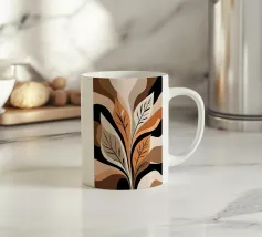Questa opera d'arte botanica astratta presenta foglie vorticose nei toni caldi del marrone, del beige e del nero. Le forme organiche e le linee fluide creano un senso di movimento ed energia, mentre i colori terrosi evocano la sensazione dell'autunno.