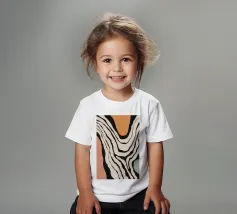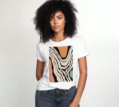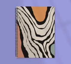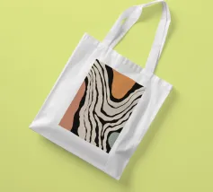 Un motivo astratto a strisce ondulate bianche e nere, che ricorda la stampa zebrata, è incorniciato da bordi color terracotta, creando un design grafico audace ed elegante.