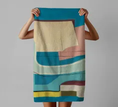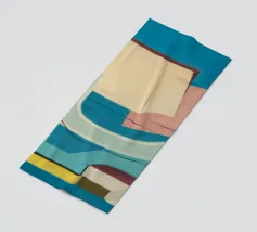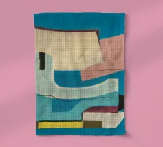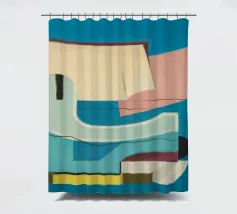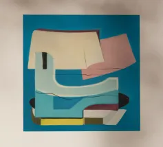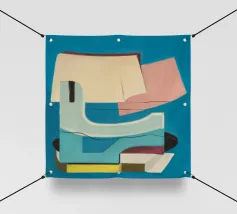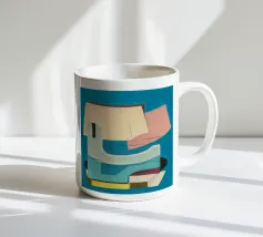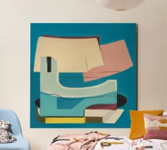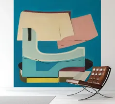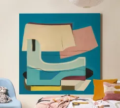 Una moderna composizione astratta con forme che si intersecano e un'audace combinazione di colori. Il dipinto crea un'esperienza visiva dinamica e coinvolgente.