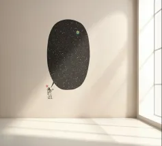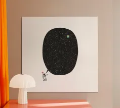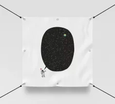 Un affascinante astronauta che sembra discutere appassionatamente di un argomento. Accanto all'astronauta, una bolla vocale è riempita da un universo in espansione, con innumerevoli stelle e il pianeta Terra. Quest'opera d'arte accattivante e minimalista è perfetta per chiunque abbia un'affinità con gli astronauti e i temi spaziali.