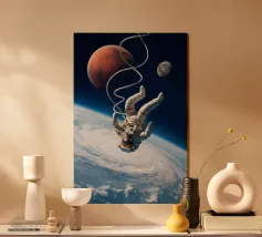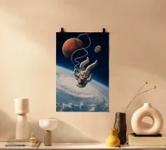 Questa dinamica opera d'arte spaziale raffigura un astronauta alla deriva senza peso sopra la Terra, circondato dalla vasta bellezza del cosmo. Le vorticose nuvole sottostanti, insieme a Marte e alla Luna che brillano in lontananza, creano un potente senso di movimento, esplorazione e meraviglia. I dettagli vividi della tuta, l'illuminazione drammatica e il profondo cielo stellato rendono questo disegno perfetto per gli amanti dell'astronomia, dell'arte fantascientifica, dei temi futuristici e delle decorazioni murali ispirate all'avventura. Un pezzo sorprendente che celebra la curiosità e l'universo senza limiti.