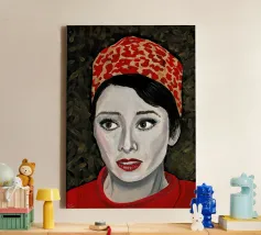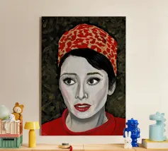 La grazia senza tempo incontra l'audace modernità. Questo ritratto sorprendente cattura l'eleganza iconica di Audrey Hepburn con un tocco vivace, perfetto per gli amanti del cinema classico, della moda e della femminilità senza paura.