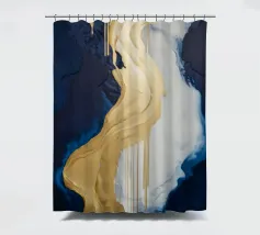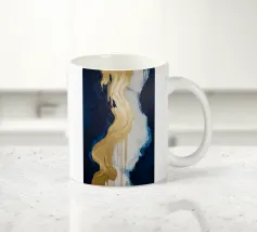 L'oro fuso si riversa su forme bianche e blu profonde come l'alba attraverso le montagne.