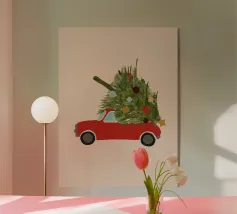 L'auto di Natale rossa con l'albero di Natale sul tetto su sfondo beige è una grande decorazione natalizia che irradia calore, accoglienza e allegria. Perfetta per chi vuole rallegrare la propria casa o è alla ricerca di una dolce immagine da regalare. Adatto anche come accogliente maglione per Natale e come maglione di gruppo per fantastiche foto natalizie. Personalizzatelo con il vostro nome o con una bella frase natalizia!