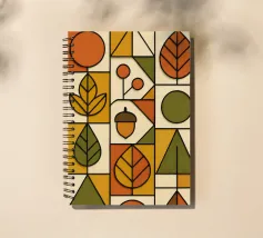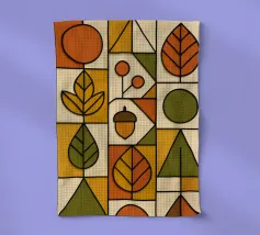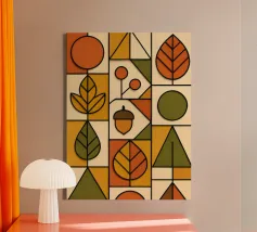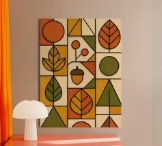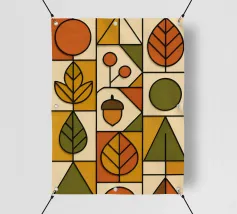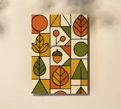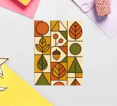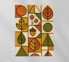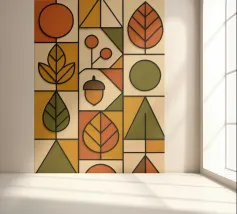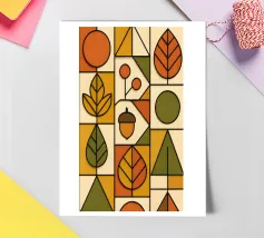 Arte autunnale in stile Bauhaus. Ho utilizzato carta testurizzata e colorata per creare un design funzionale e minimalista. Ho utilizzato linee 3D nere per enfatizzare la profondità delle forme geometriche, la pulizia delle linee e la funzionalità del disegno.