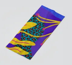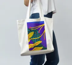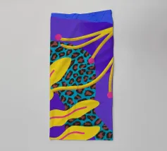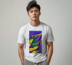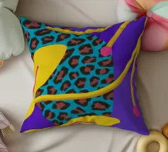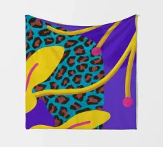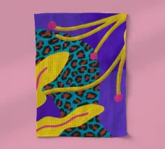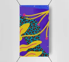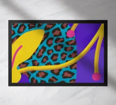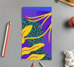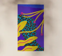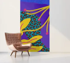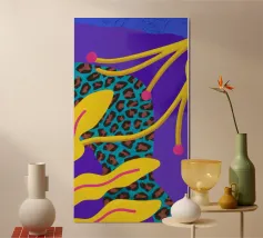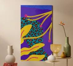 Una composizione audace e astratta caratterizzata da blu e gialli vibranti, con accenni di texture leopardate. Le forme dinamiche e il sorprendente contrasto cromatico evocano lo spirito selvaggio di un safari, reso in uno stile moderno e artistico.