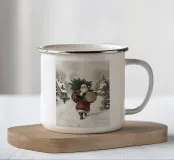 Un nostalgico motivo natalizio: Babbo Natale marcia allegramente in un villaggio innevato con un tamburo in mano e un abete sulla schiena. I colori caldi e festosi e l'idillio invernale rendono questo disegno perfetto per decorazioni, regali e accessori natalizi. Ideale per murales, tazze, cuscini o maglioni: un'immagine che porterà l'allegria del Natale e un'atmosfera festosa in ogni casa.