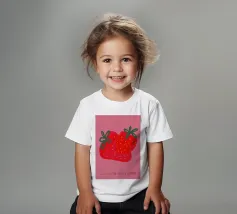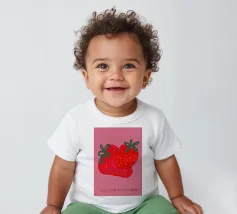 Fragole rosse su sfondo rosa con un gioco di parole pieno di fascino. Fruttata, giocosa e spiritosa: una stampa che esprime l'amore in modo leggero e dolce. Ideale come regalo o come oggetto di rappresentanza che diffonde il buon umore e fa sorridere i cuori.