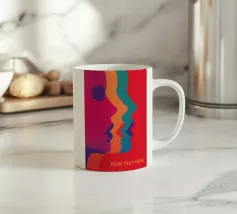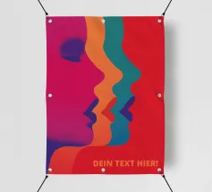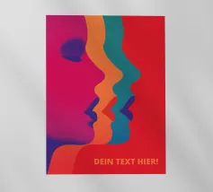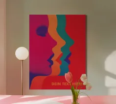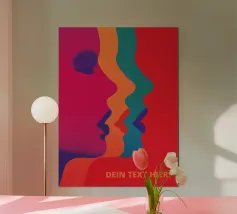 Tre sagome, un momento emozionante! Questo pezzo è puro pop psichedelico anni '70 - Milton Glaser incontra Tadanori Yokoo in un trip di acidi. Magenta, arancione e turchese scivolano l'uno sull'altro come onde pulsanti di colore, quasi fondendo tre volti: desiderio a sinistra, devozione al centro, pura aspettativa a destra. Tre bocche a pochi millimetri di distanza, tre nasi che potrebbero toccarsi: un bacio che avviene tre volte nello stesso momento. Minimale, grafico, ipnotico. Questo poster trasforma qualsiasi stanza in un club dei sensi. Con in più il vostro testo personalizzato!