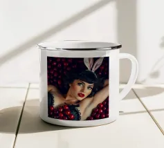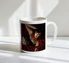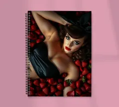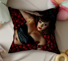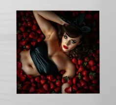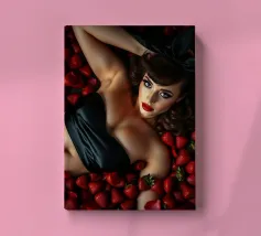 Dea Pin-Up sensuale in un'oasi cremisi alla fragola