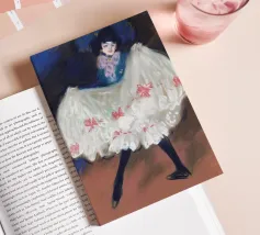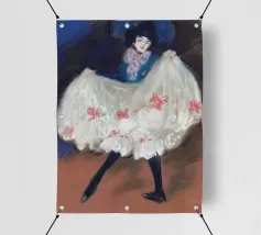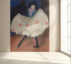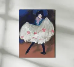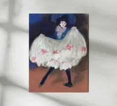 Entrate nel mondo vibrante della Belle Époque con questo poster digitale, che evoca lo spirito delle prime opere di Picasso o dei suoi contemporanei, con una dinamica ballerina di Can-Can. L'opera d'arte cattura il movimento esuberante della performer, con la sua voluminosa gonna bianca a balze ornata da fiocchi rosa, un audace cappello blu e un abbigliamento scuro. Le pennellate energiche e la ricca tavolozza di colori danno vita all'atmosfera vivace di un cabaret. Questo poster digitale di qualità superiore, a 7000x5000 pixel e 300 dpi, rende magnificamente il movimento e la teatralità, rendendolo un pezzo emozionante per coloro che apprezzano