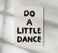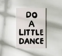 "Do a little dance" incoraggia i piccoli piaceri della vita quotidiana. Il carattere nero grande e chiaro su uno sfondo beige chiaro irradia minimalismo. Questo semplice testo porta gioia ed energia positiva in ogni ambiente.