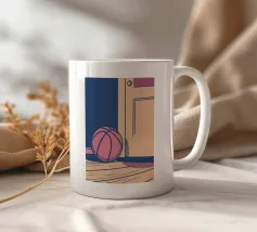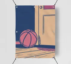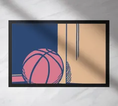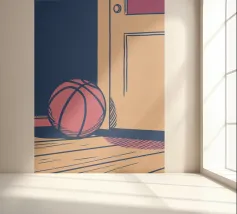 Create un'atmosfera sportiva a casa vostra con questa illustrazione dinamica. Catturate l'emozione di un'entusiasmante partita di basket, direttamente dalla comodità di casa vostra.