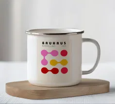 Iconica stampa di design grafico Bauhaus del 1919. Presenta audaci forme geometriche, tra cui cerchi e forme arrotondate uniche, disposte in un suggestivo motivo simmetrico utilizzando i colori primari (blu, rosso, giallo) e il nero. Incarna i principi fondanti del design minimalista, della forma geometrica e del colore deciso. File artistico digitale di alta qualità (7000x5000px, 300 dpi) perfetto per riproduzioni di grande effetto. Ideale arte murale colorata vintage e moderna.