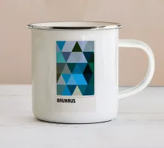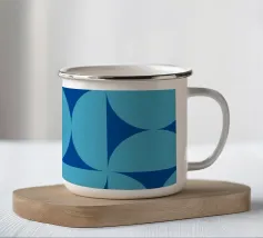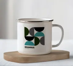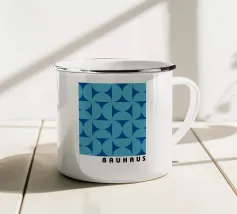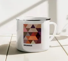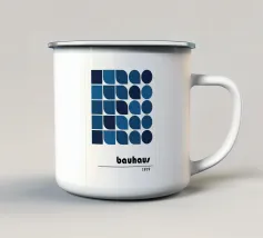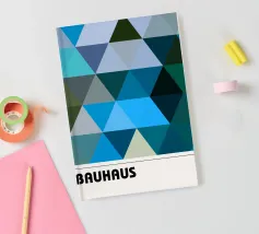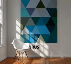 Questo poster ispirato alla Bauhaus presenta un elegante motivo triangolare nei colori blu, turchese e verde. Le forme pulite e i colori freddi creano un'atmosfera moderna e minimalista, perfetta per gli spazi abitativi o lavorativi. Ideale come murale, tazza, cuscino o camicia per gli amanti dell'arte geometrica.